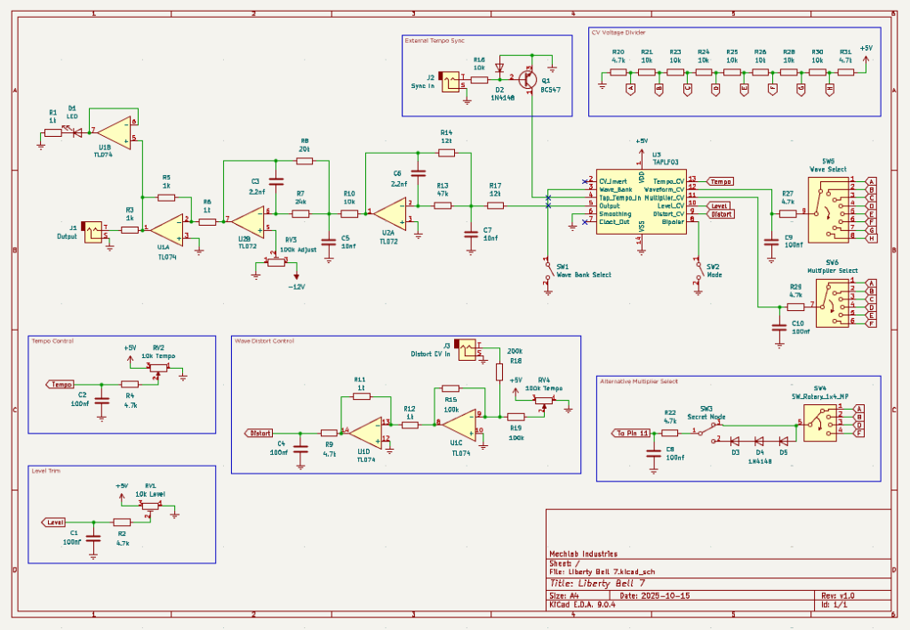 Finally! Something that syncs. Okay, that’s in poor taste, but it really was a journey to get here. After half a dozen failed attempts to create a decent clock-syncable LFO from scratch, I decided to go in on an Electric Druid TAPLFO3 chip and put the headache behind me.